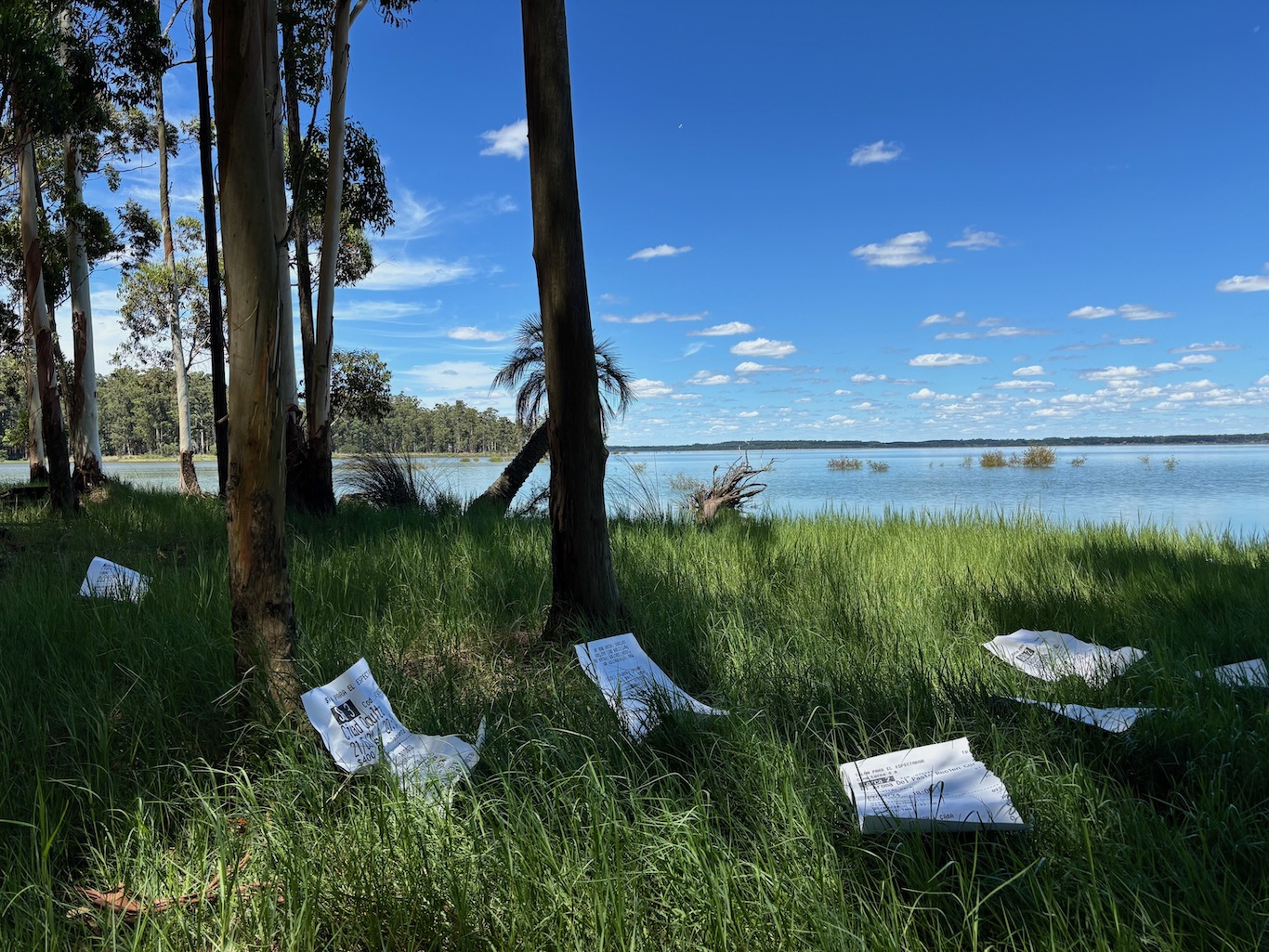 Sentada a orillas del lago Salto Grande, leyendo. No es un ideal pero me siento feliz cuando lo hago.