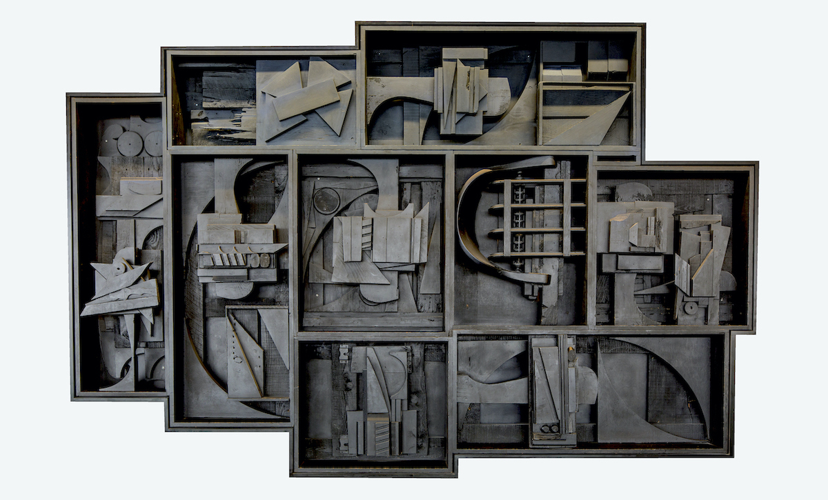 Louise Nevelson, tras años de esfuerzo, depresiones, pérdidas y logros, logró formar parte de ese grupo de artistas rupturistas, abstractos y viscerales que lideraban la escena artística internacional. En 1962 fue enviada a participar de la Bienal de Venecia con una instalación. Se cree que Paneles en sombra fue originalmente un fragmento de esa obra. Luego fue seleccionada como pieza ganadora del Premio Internacional de Escultura del Instituto Di Tella. Detrás de esa decisión estuvieron el argentino Jorge Romero Brest y el italiano Giulio Carlo Argan, quienes hicieron posible la llegada de la pieza a nuestro país.