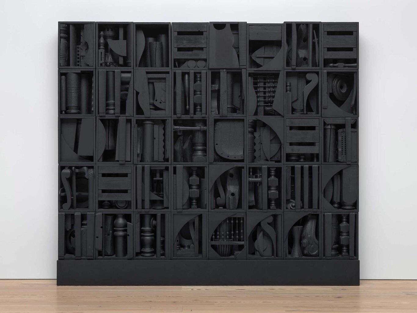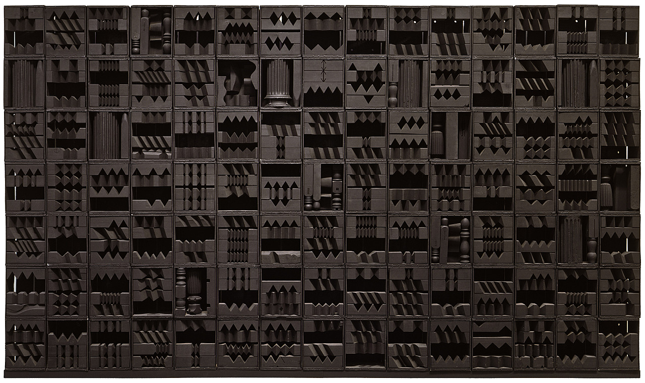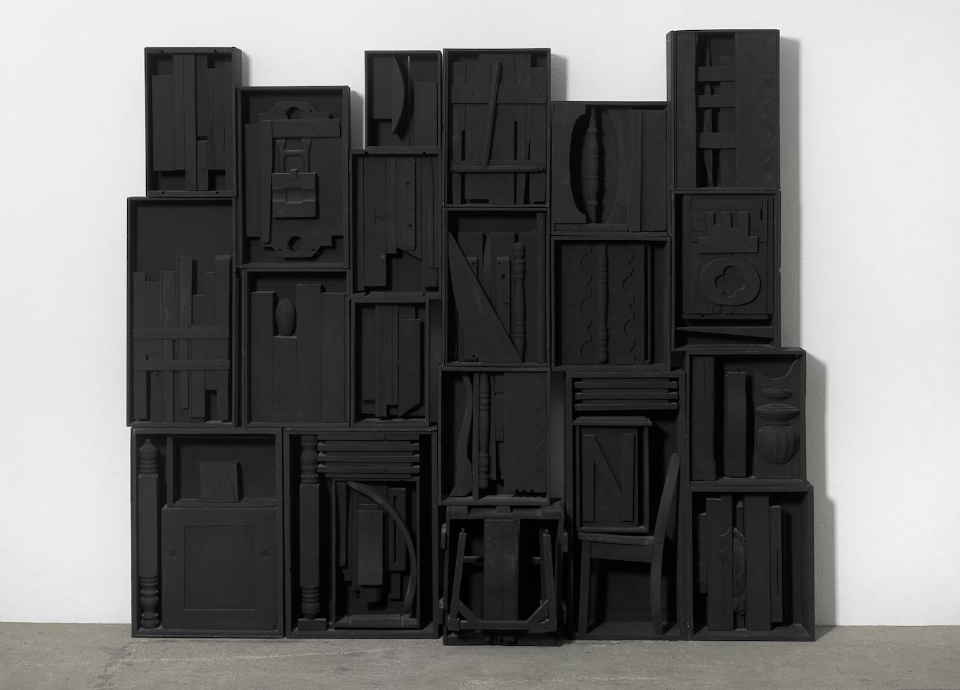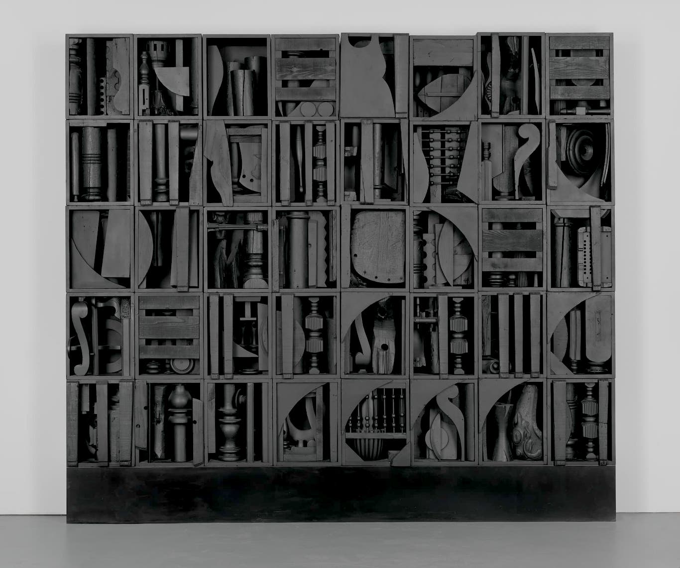Las primeras obras realizadas por la artista mediante este proceso de assamblage eran de formato reducido, como es el caso de Clown Tight Rope Walker (1942), donde todavía pueden reconocerse vestigios de una cierta figuración. A partir de los fragmentos que la componen, es posible interpretar la presencia de un personaje circense equilibrándose con una vara. Sin embargo, este método fue evolucionando hacia estructuras de mayor escala, hasta llegar a instalaciones como la exposición Moon Garden Plus One presentada en 1958 en Nueva York. Esta instalación consolidó su estilo característico, basado en el uso del monocromo y en la construcción de muros escultóricos. La instalación, organizada casi como una puesta teatral, reunió 116 cajas negras. Cada una tenía diferentes composiciones con fragmentos en madera pintados de negro que podían combinarse en diferentes composiciones.