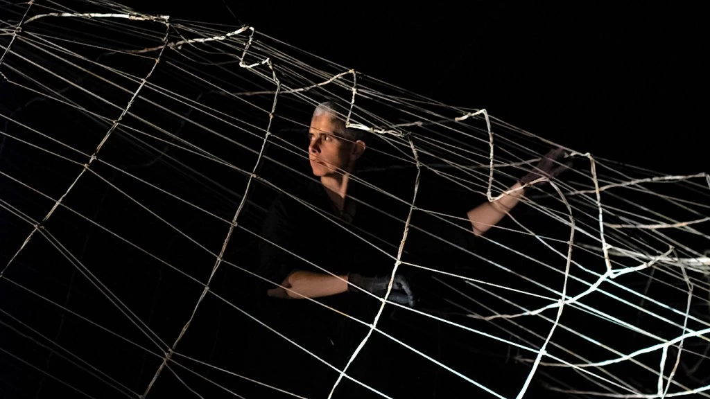 -Mis obras tienen siempre algo tenebroso y ambiguo. Por ejemplo, la gente observa una linda imagen cuando estoy colgada de los alambres realizando un dibujo en el aire, pero por otro lado estoy sin arnés de seguridad a once metros de altura. Me gusta ese límite entre lo bello y lo perturbador. No me gusta el arte cuando te sugieren que tenés que sentir, me corro de ese lugar, lo que busco es espiar un mundo posible donde la imagen y la materialidad no sean en las que estamos inmersos todos los días, activar la fibra de lo desconocido. Pienso el arte y el dibujo desde la tensión, por eso estoy todo el tiempo manejando hilos.