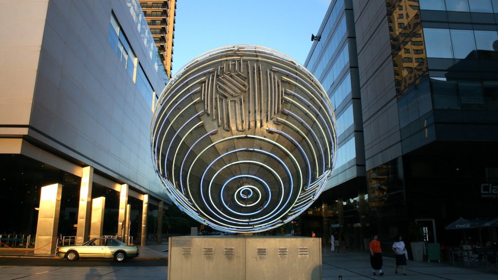 ¿Pero por qué una esfera como símbolo? En el Espacio Plá, sitio dedicado a la vida y obra del artista, acercan una explicación: “La esfera se define como un cuerpo geométrico limitado por una superficie curva cerrada cuyos puntos equidistan de otro interior llamado centro. Este carácter expandible de la esfera -que en términos empíricos se puede verificar desde una gota de agua hasta un cuerpo celeste, como la Luna- tiene su correlato en el formato digital, pues cualquier archivo puede copiarse, ampliarse y reproducirse del mismo modo que la forma esfera”.