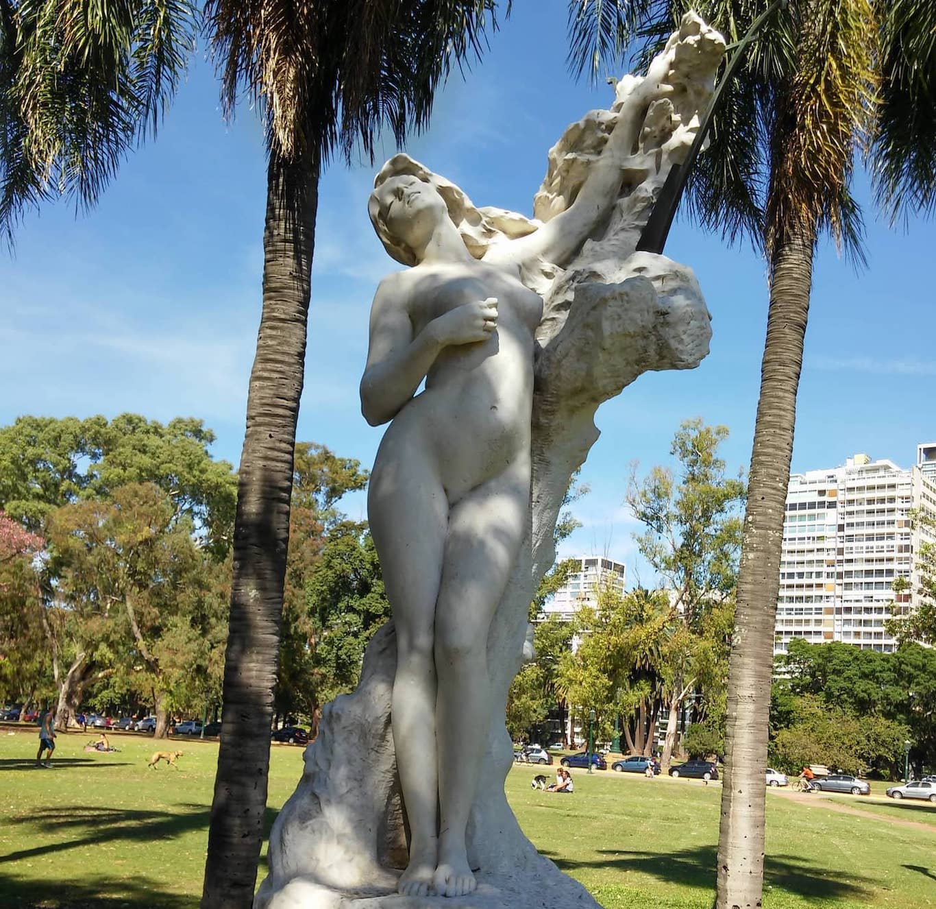 Entre los senderos arbolados del Parque Tres de Febrero, en el cruce de la avenida Infanta Isabel y Coronel Marcelino Freyre, a metros del lago, se alza una de las esculturas más sugestivas del patrimonio artístico de la ciudad: La Cigale. Tallada en mármol de Carrara por el escultor francés Félix Maurice Charpentier (1858–1924), la obra fue inaugurada en 1908 y desde 2019 ostenta la declaración de Monumento Histórico Nacional.