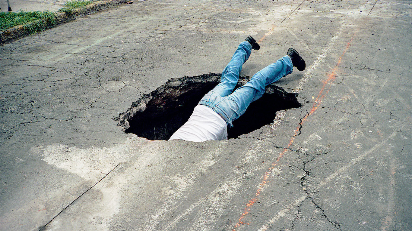 A propósito (1997) de Miguél Calderón y Yoshua Okón. Acción e instalación.