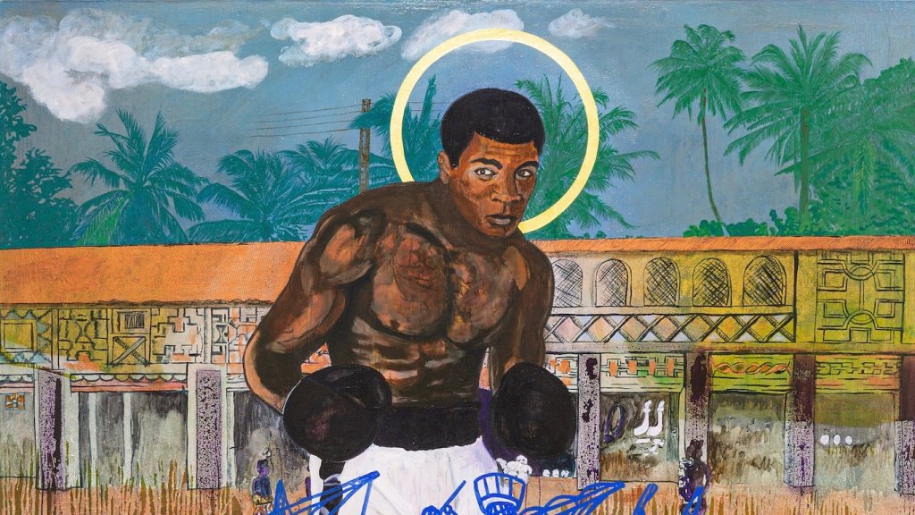 Quien definitivamente lo hizo es el pintor ghanés-británico Godfried Donkor (Ghana, 1964) que además de retratar a Alí como ícono (en el sentido religioso estricto, aureolado, siguiendo también la inspiración que Warhol había encontrado en los íconos ortodoxos rusos) está dejando una pinacoteca de sus ancestros africanos obligados a pelear a trompadas hasta morir en el circo moderno de la Revolución Industrial y la colonización. Su serie Battle Royale (I y II) resume veinte años de investigación en el desarrollo del boxeo como práctica forzada por los traficantes de esclavos en Estados Unidos e Inglaterra y la progresiva conversión de Accra (Ghana) en una cantera de futuros peleadores en lo que Donkor define como “el arte de la supervivencia”. “Battle Royale” era el nombre que la metrópoli le daba a este entretenimiento cruel cuyos sucesivos rediseños terminaron por dar forma al boxeo tal cual lo conocemos (no es el lugar para discutir si es o no deporte).