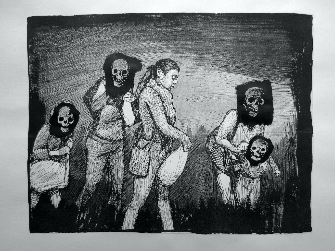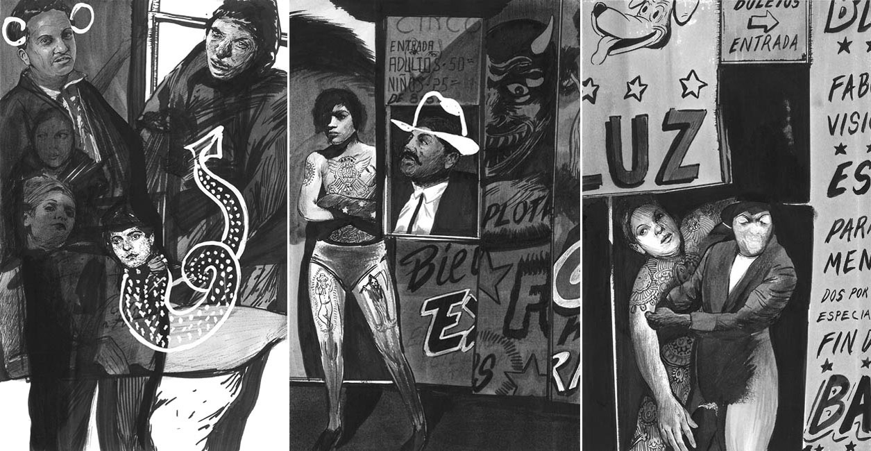 Pero Crosthwaite ve la ciudad y la frontera entre el tercer mundo y el imperio con ojos propios y asumiendo en la cultura mestiza rasgos que se desentienden de cualquier hibridez impuesta por la cultura global. Su Welcome to Tijuana no es un slogan ni un estribillo, sino que tiene la urgencia de una crónica, la densidad de un ensayo y el aparataje descriptivo heredado de la pintura de costumbres y oficios de los old masters holandeses y flamencos. Ni folk ni pop, Crosthwaite comunica con la inmediatez del poster, aunque en sus acrílicos se verifique un axioma que la gran entrevistadora uruguaya María Esther Gillio tenía para con el periodismo: la superficie de un charco con la profundidad del océano. Revisando el horizonte propuesto por The Line, la sucesión que se capta de un vistazo lleva siglos de superposición desde ornamentos precolombinos mesoamericanos a la máscara del jaguar, patrimonio contemporáneo de la lucha libre. En la misma vista panorámica conviven piernas sin cuerpo que zapateaban antes de la conquista; una botella familiar de Coca Cola; un Mickey Mouse deportado (del otro lado de la línea); un joven calavera como los de José Guadalupe Posada y otra que atiende un audio de whatsapp en un smartphone. Todo lo que entra en Tijuana (que es muchísimo) tiene lugar en esta y todas las pinturas de Crosthwaite.
