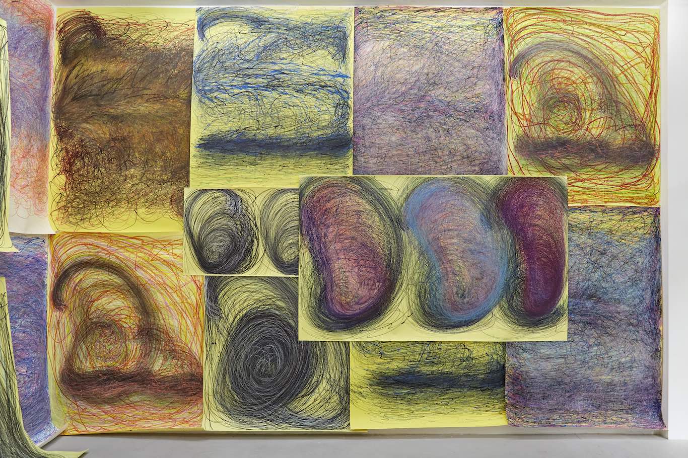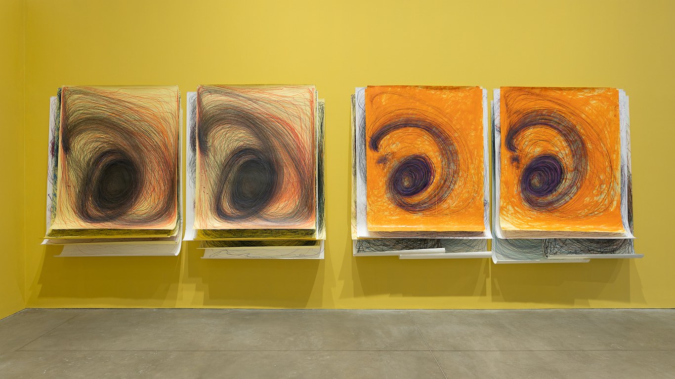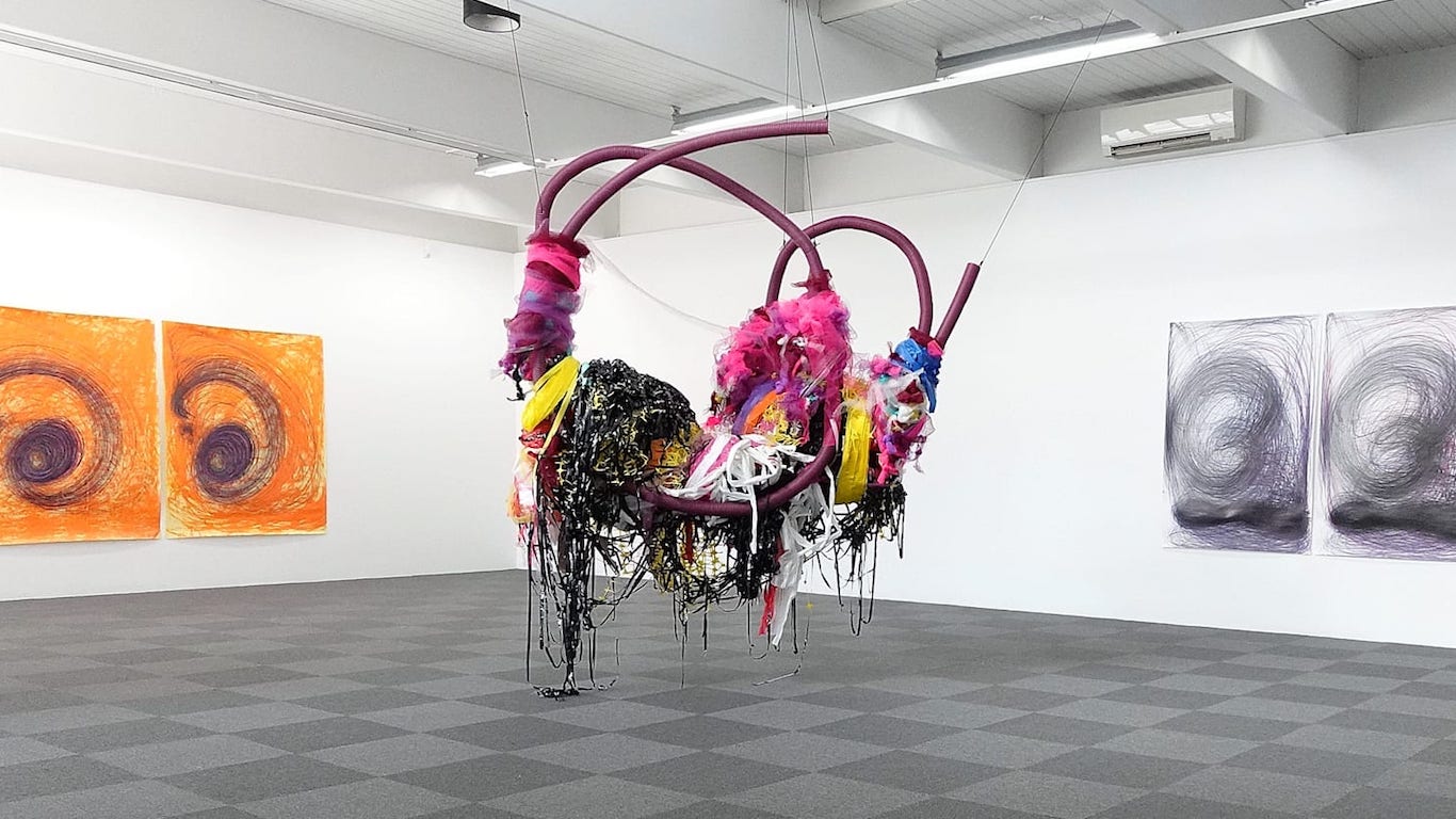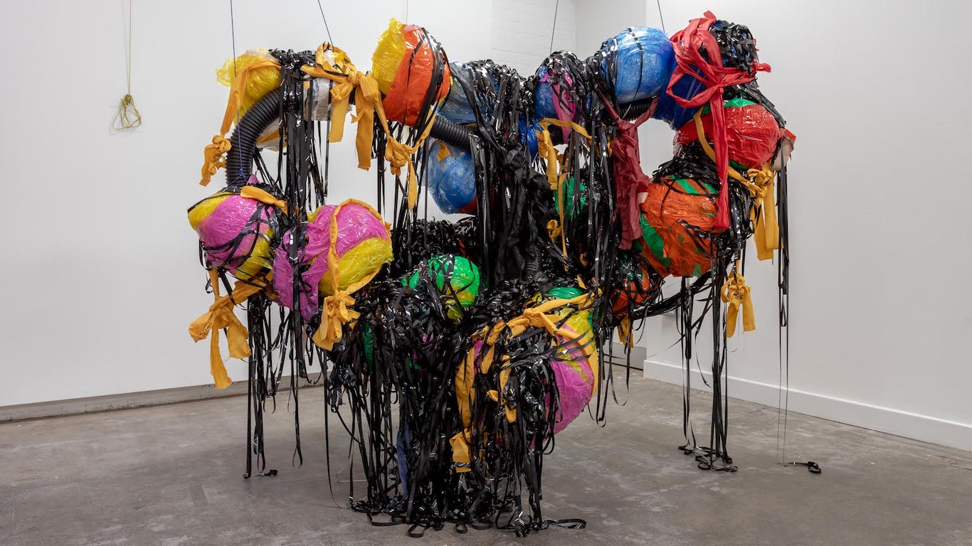 Un video posteado por la Tate Modern muestra a Nnena trabajando en silencio, sin parar, abstraída de todo y de todos. Pero están las intérpretes, buscando descifrar esos ovillos hechos de éxitos o fracasos rotundos de la civilización de la videocasetera. “Tengo un recuerdo muy vívido de Nnena trabajando en un showroom de autos abandonado, haciendo toda esta clase de esculturas secretas”, ilumina Jes Fernie (curadora y ensayista anglo) y sigue: “sentí de manera muy fuerte cómo usaba su cuerpo por eso la forma estaba dictada por sus movimientos. Era increíble verla trabajar. Muy bello. Le gusta tener música de fondo mientras trabaja. Le encanta ABBA, un poco de Michael Jackson y Stevie Wonder”. La voz de Fernie (pelo corto blanco y anteojos) se superpone con la figura un poco andrógina de Nnena que parece una máquina de embalar produciendo su propia música: el ruido de las cintas pegoteándose entre sí para retorcerse y tomar volumen en el espacio. Oímos de otra autoridad del mundo del arte británico decir que Nnena baila sin parar mientras envuelve cosas o dibuja unos vórtices multicolor que desde el sur del mundo se ven como los dibujos de Emilio Renart circa 1963. Y de su galerista (la directora de ActionSpace) que “ella brilla cuando trabaja. Es una verdadera artista”.