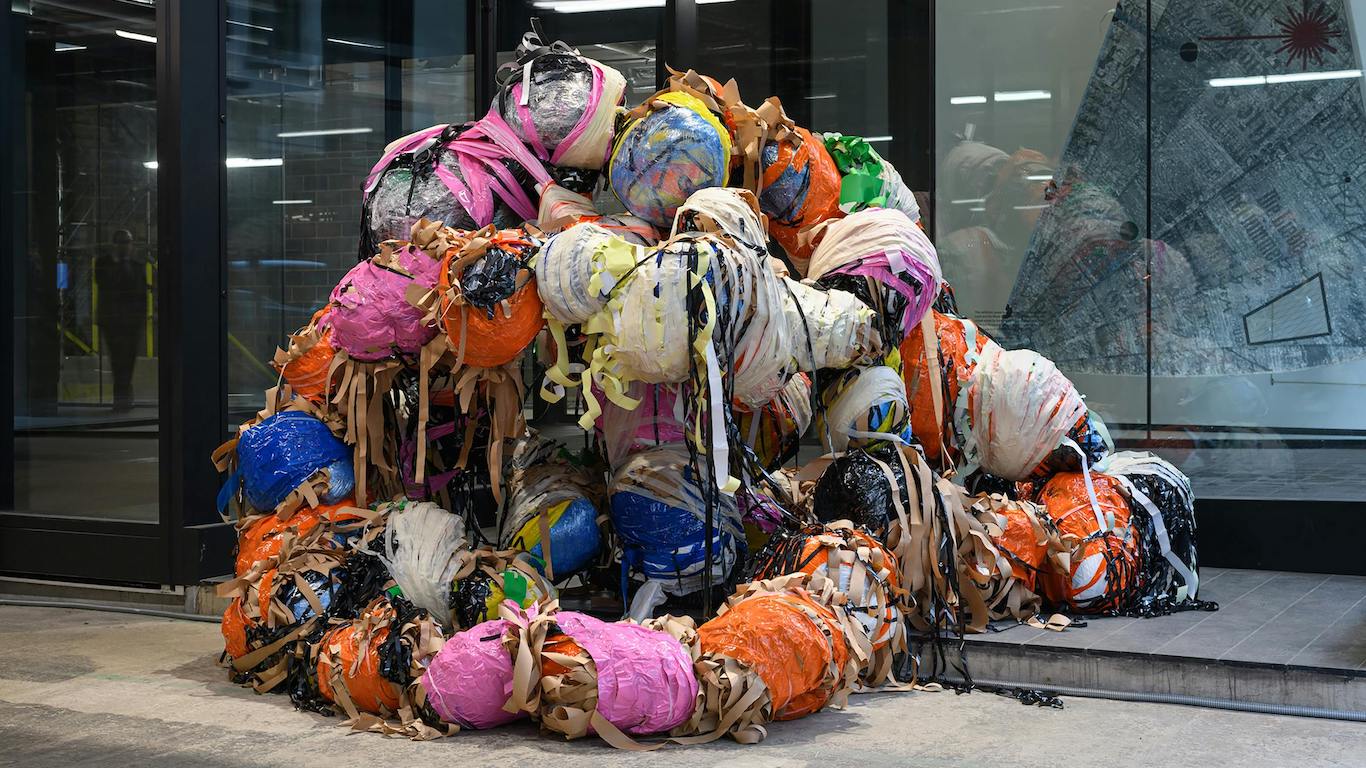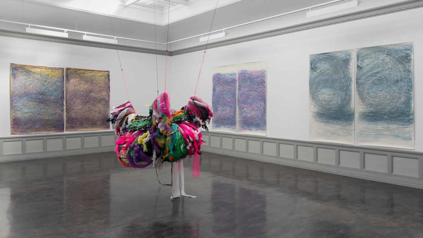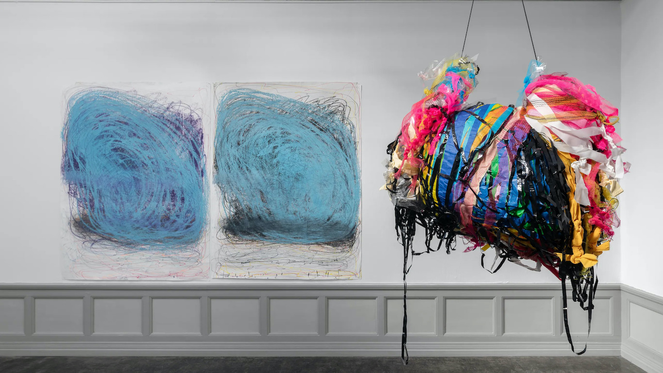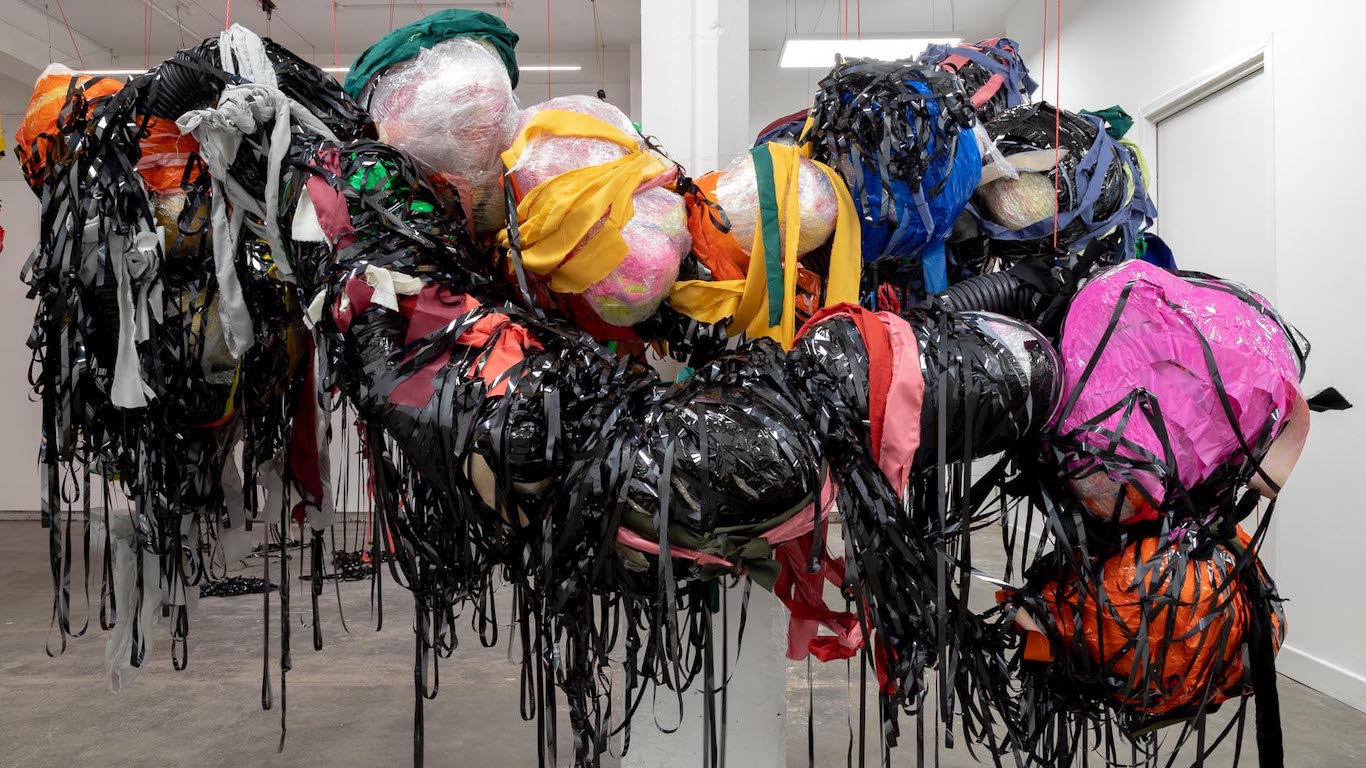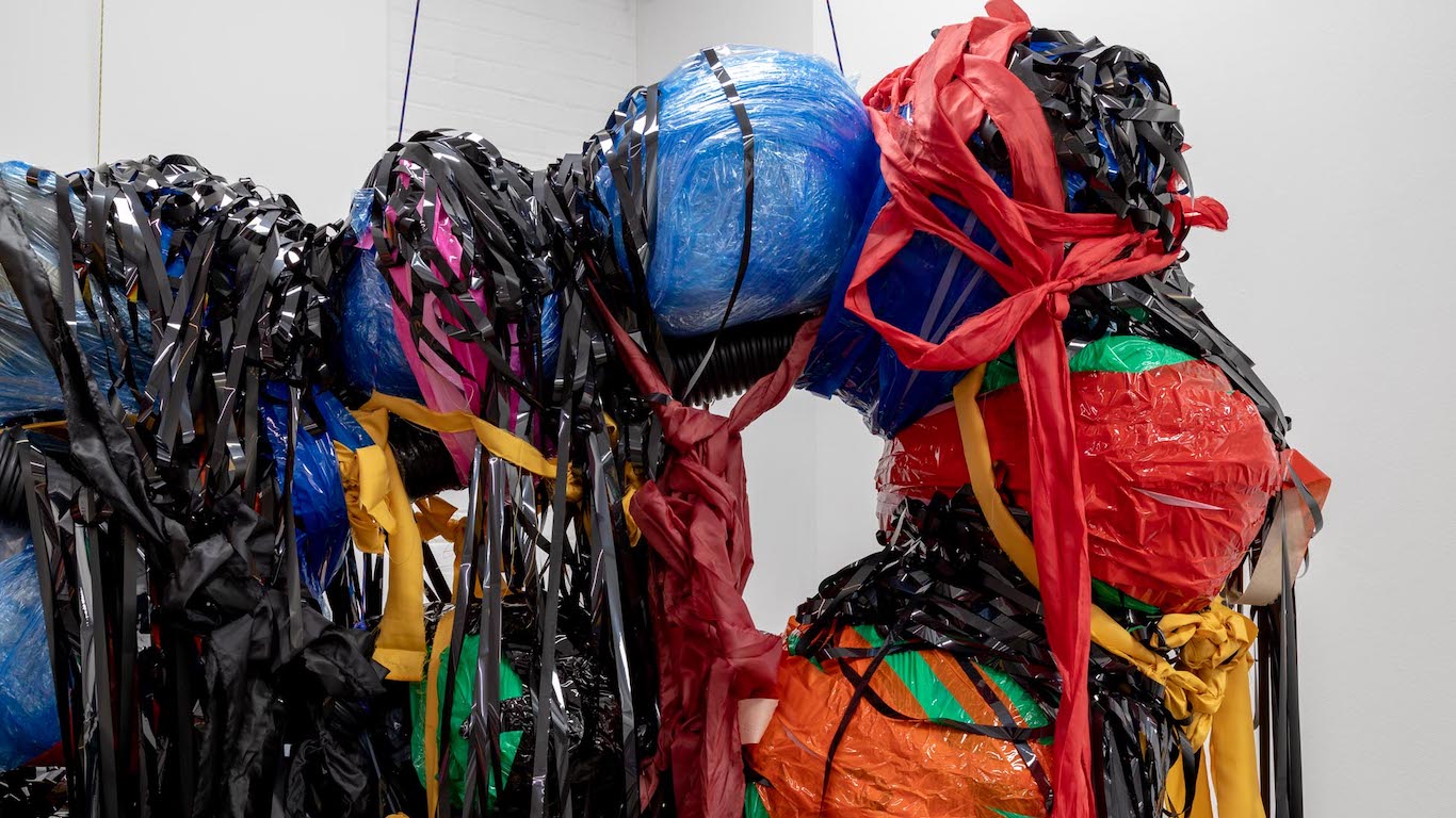 Todo para que Nnena Kalu (Glasgow, 1966) se alzara con el Premio Turner de 2025 utilizando como mayor insumo las cintas de cientos de VHS perdidos-encontrados en volquetes de basura, mudanzas, las ruinas, al fin, de la era Blockbuster, el reino de la videocasetera. Para Kalu, lo que el viento se llevó del cine da igual, lo que su sensibilidad de artista capturó es la materia de la cinta de VHS (sus lost tapes) como otra posibilidad de línea. Y a partir de esa línea entrar en un loop que en lugar de provocar la repetición sonora o visual engendra unas cosas que se cuelgan a la altura de los ojos (en UK dirán “esculturas” pero ojalá Nnena supiera de las “cosas” que creó Rubén Santantonín durante la década del 60 en Argentina).