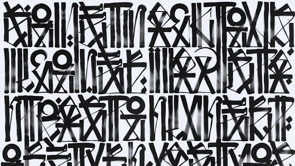 Los elementos caligráficos de los alfabetos hebreo, árabe, egipcio y asiático nutren su obra en bloques que pueden leerse de arriba hacia abajo o en filas desde la derecha o la izquierda, muchas veces se parecen a la estructura de un poema visual en clave. ¿Será ese el secreto de su obra? La historia indica que han sido muchos los que intentaron descifrar las escrituras antiguas (en la lengua egipcia, los jeroglíficos se llamaban medu netjer, «las palabras de los dioses», ya que se creía que la escritura era un invento de los dioses) encriptadas en simbologías diversas.