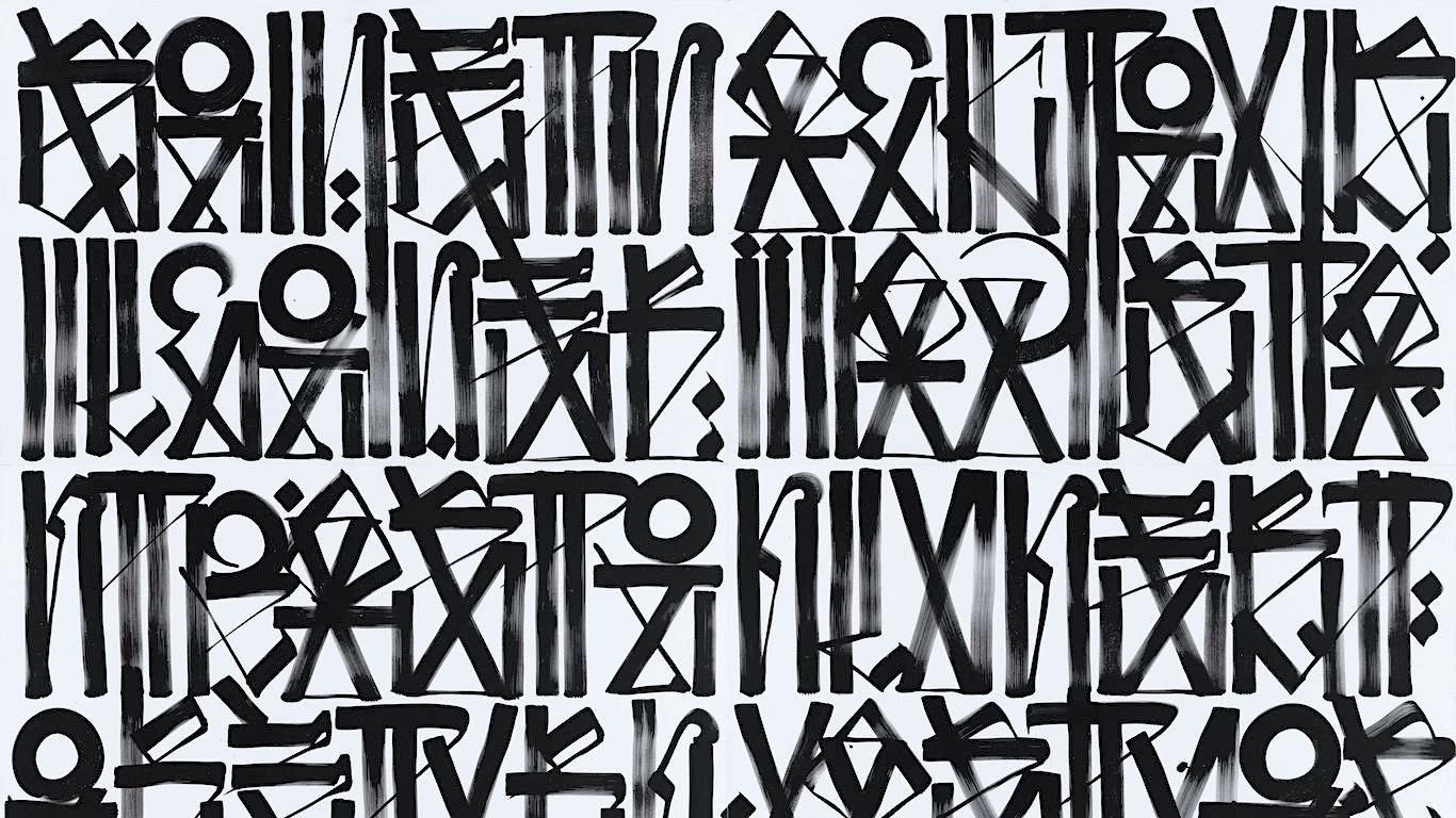 Retna no busca comunicar un mensaje claro y legible; más bien, es un proceso profundamente meditativo para el artista. Retna describe su experiencia artística como una conversación consigo mismo, un diálogo interno al que accede sumergiéndose en música a todo volumen a través de sus auriculares, alcanzando así un estado hipnótico. “Normalmente, elijo una canción específica para cada obra”, explica Retna. “Esa canción se convierte en el himno de la pieza. Repito la misma canción para mantenerme en la misma zona mental y poder pintar con mayor rapidez”.