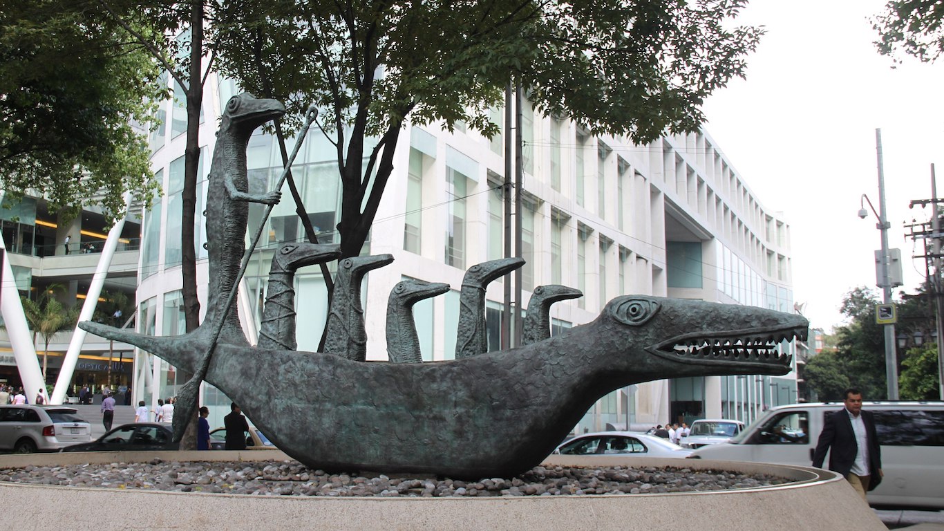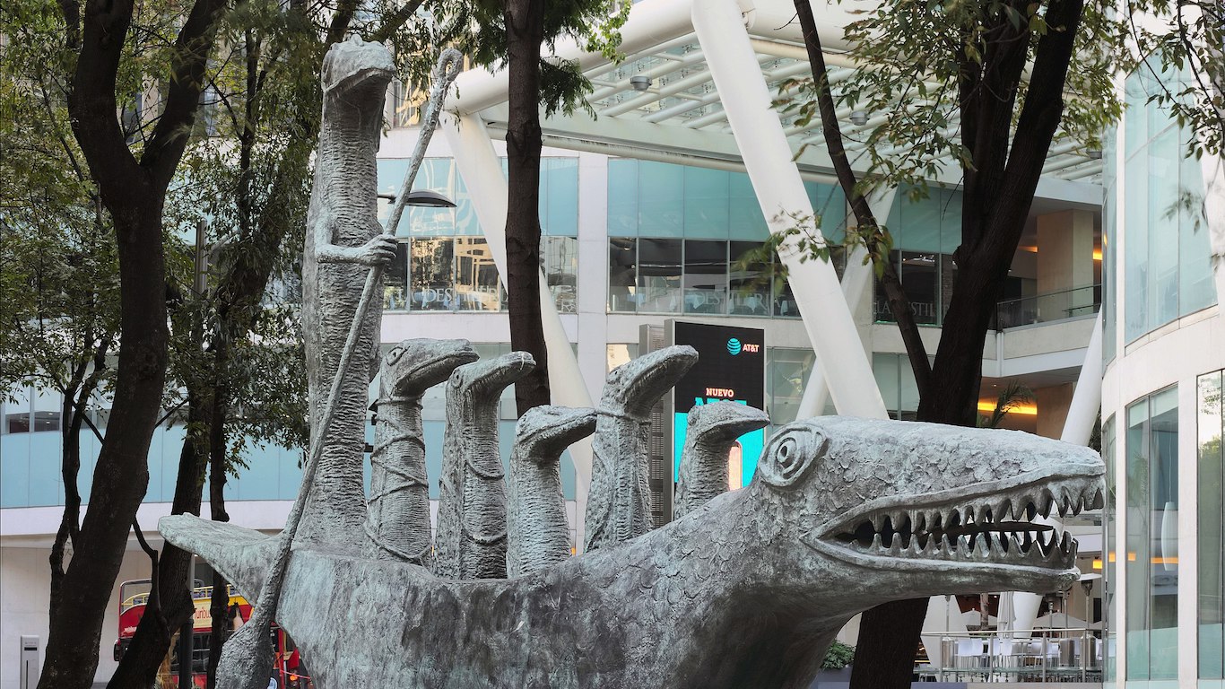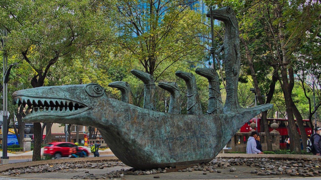 Al caminar por el Paseo de la Reforma, una de las avenidas más importantes de Ciudad de México, irrumpe una figura de bronce de 8,5 metros de largo, 4,8 metros de alto y 5 toneladas de peso que obliga a detenerse. Se trata de ¿Cómo hace el pequeño cocodrilo?, la obra de la artista inglesa Leonora Carrington. En ella una embarcación con la forma del animal conduce a seis figuras de la misma especie. Creada originalmente como una pintura en 1998, ambas se inspiraron en el poema homónimo de Lewis Carrol, autor de Alicia en el país de las maravillas e incluído en esa misma novela.