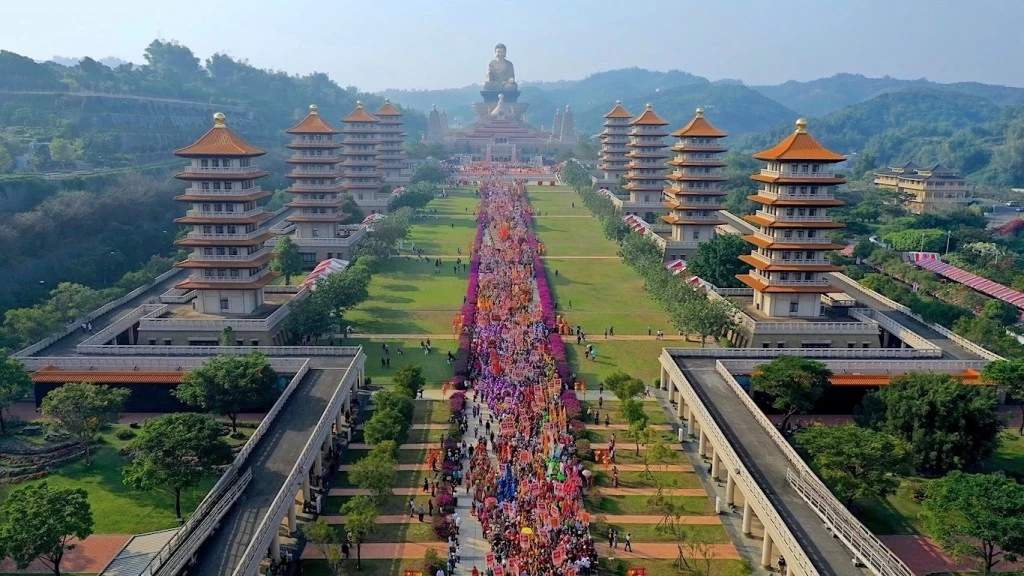 En la cima de una montaña que alguna vez fue un bosque de bambú, se alza el templo budista más grande de Taiwán. Ubicado en el distrito suburbano Dashu, del municipio Kaohsiung, el Monasterio Fo Guang Shan es la sede central de la organización internacional que lleva el mismo nombre. Cuatro son los objetivos de esta orden monasterial, creada para promover y propagar el budismo humanista: difundir el Dharma (la “ley religiosa” en las doctrinas y religiones de origen indio) a través de la cultura; cultivar los talentos humanos a través de la educación; beneficiar a la sociedad a través de la filantropía; purificar la mente mediante el crecimiento.