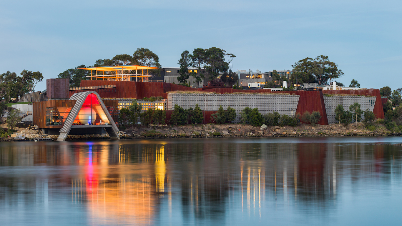 A orillas del río Derwent, se distingue una construcción subterránea que engaña en su modestia. El edificio, enriquecido por lo copioso de sus árboles, sostiene el misterio al prescindir de ventanas. Cemento y madera son los materiales escogidos para cubrir esta fortaleza que nació en 2011 como producto de una génesis igual de engañosa que truculenta. Es que a primera vista, el MONA muestra una planta única, emplazada en la superficie de igual modo que un museo convencional. Pero la tradición se quiebra apenas los visitantes ingresan a su entorno y conocen la escalera caracol que los acerca hacia los tres niveles de estructuras laberínticas. Lo que el público divisa cuando se acerca mediante un ferry es apenas un fragmento, como una pata de la bestia que habita subterráneamente.